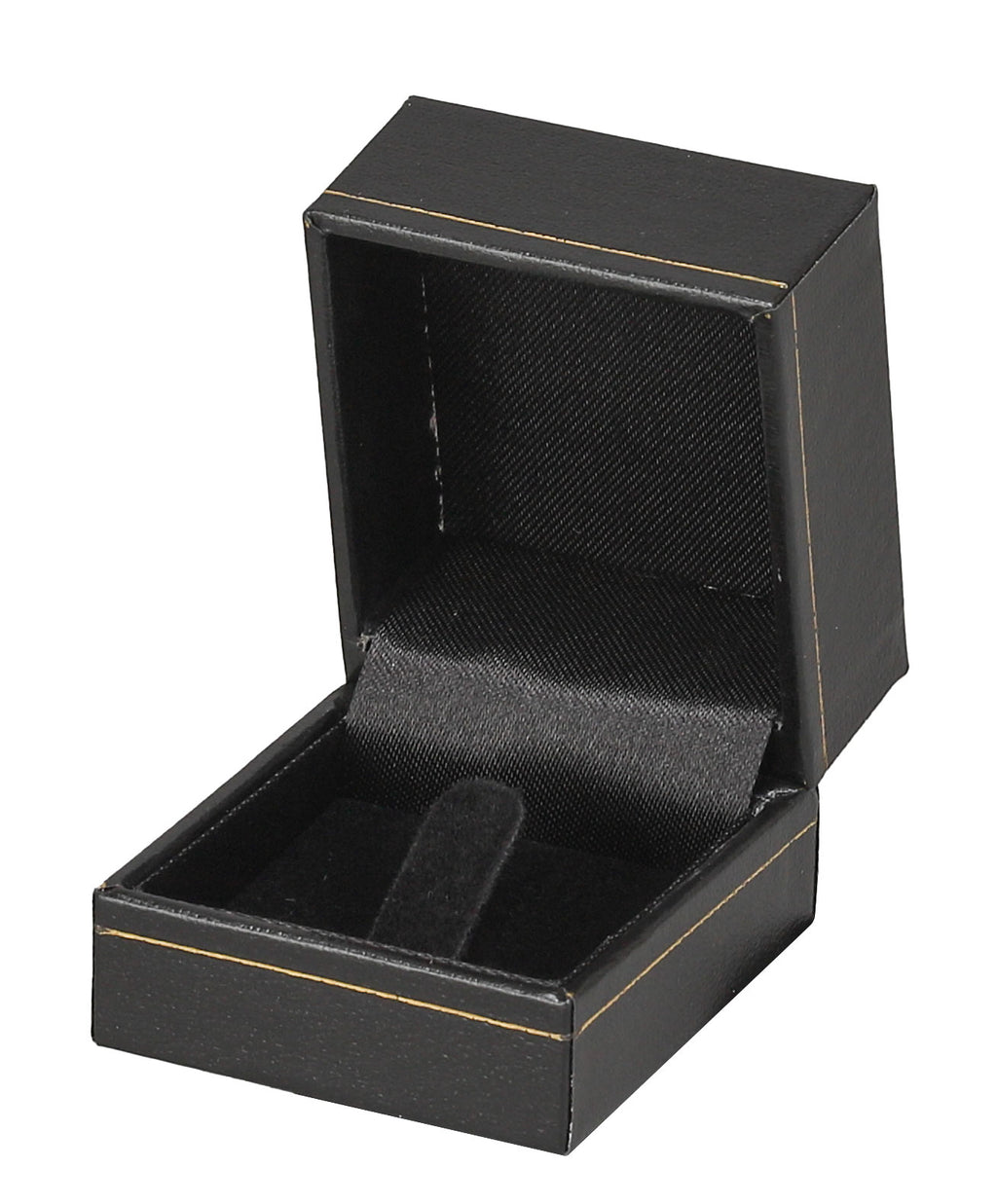 Red or black leatherette with velvet lining and gold trim. 3.5" L x 3" W x 1.5" H.