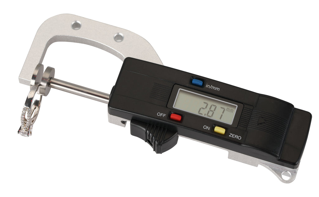 The Master 25mm precision digital gauge is an easy, quick and accurate measurement device. The unit features a perfectly flat measuring tip which allows the user to measure flat on a table without having to pick up the stone and placing it into the gauge. Even melee can be measured this way with prevision. The measuring range is 0.01 to 25mm. The display can read in mm or inches.