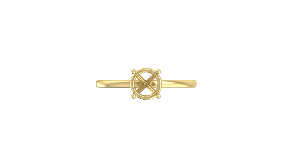 A timeless foundation for your dream ring — this solitaire mounting is crafted in your choice of 14K or 18K gold, available in both white and yellow finishes. Designed for a round-cut center stone, it features a sleek 4-prong head and a refined 1.5 mm band that delivers an elegant, balanced look.