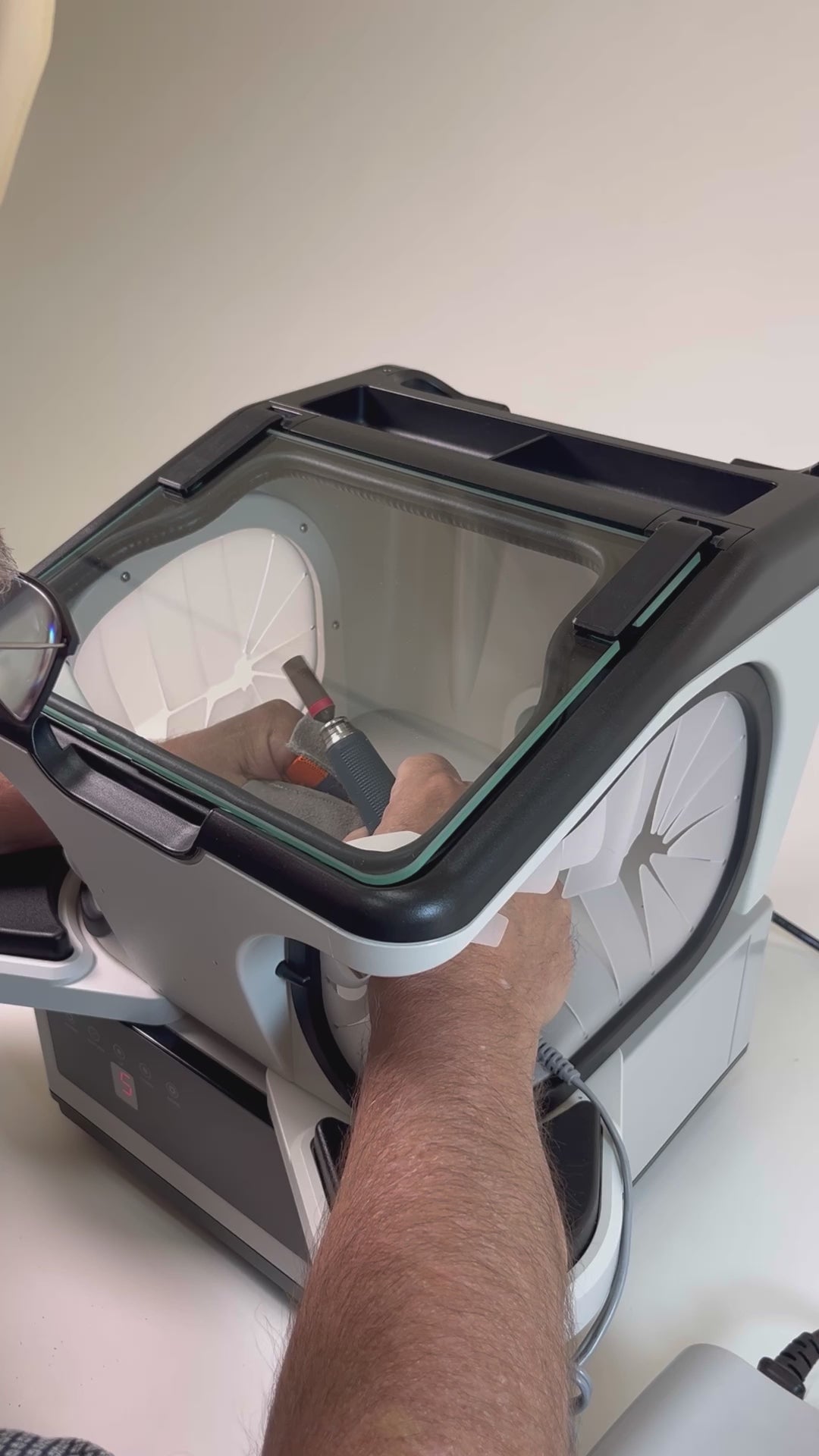 The powerful suction motor collects all dust and precious gold, silver or platinum particles in the reusable filter. Collected particles are easily removed from the filter and saved.